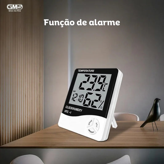 Termômetro LCD Digital Medidor de Temperatura Umidade Higrômetro Interior e Exterior Estação Meteorológica c Relógio HTC-1 HTC-2